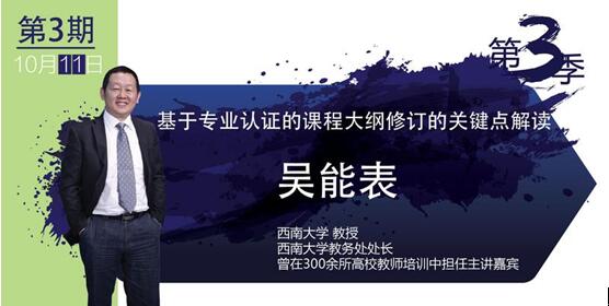 专业认证是质量保障的重要手段,也是教学质量评估纵深发展的必然,而认证的产出最为基础的工作就是课程目标的达成,而课程目标的设置与内容的选择、教学方法的设计、学业评价的有效性都是课程大纲最为根本的要素。本次讲座,吴能表教授将基于他多年的经验,梳理课程认证过程要注意的关键要素,解读课程大纲修订的关键。