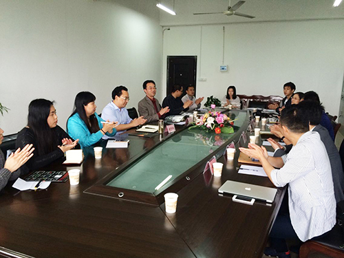 下午15:30,双方在电子商务学院会议室进行了热情友好的交流。交流会上,郑祚双院长向贵溪市考察团一行介绍了电商学院的基本情况,并主要就现阶段学院开展的各项校企合作和学生实训实践情况作了详细的阐述。