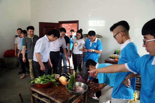 王副校长十分关心师生的吃住情况,当看到同学们正在准备中午用餐。十分高兴。他说,在大学短暂的学习生活中,能够深入农村、基层与老百姓同吃同住同生活,是弥足珍贵的,是课本之外的另外一种大学习。他要求同学们在实践中注意安全,将既定活动组织好、开展好,将好事做实。