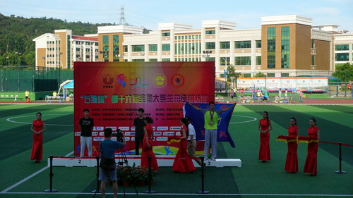 执着的训练,使得我校涌现出一批优秀的学生运动员。他们有首次参加大田赛就获得银牌仍然每天坚持骑自行车到主校区训练的政法学院的黄彬才同学(本次赛事中获得第三名);有坚持三年保持高强度训练的机材学院的梁子豪同学(本次比赛中获得男子乙组200米亚军);有扛着压力而上的土建学院的林晓龙、杜雨轩同学和化环学院的钟建同学(本次比赛中合作获得男子乙组4*100米第四名);有来自旅游学院的徐倩文、黄丹同学,来自土建学院的阳思同学和来自经管学院的段玉婷、常海姑同学组成的豪华女队(合作获得女子乙组4*400米第三名)。
