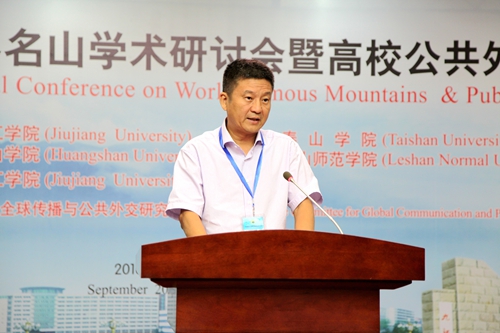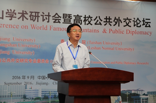 第二届世界名山学术研讨会暨高校公共外交论坛由九江学院、泰山学院、黄山学院、乐山师范学院主办,九江学院承办,中国全球传播与公共外交研究专业委员会协办。本届大会将围绕“经济全球化下的世界名山旅游发展和“一带一路”背景下的高校公共外交研究”这一主题开展广泛、深入的交流与合作。应邀出席本届大会的代表有:黄山学院党委书记汪枫,江西省人大环境与资源保护委员会副主任委员甘筱青,泰山学院副校长殷敏,黄山学院副校长胡善风,乐山师范学院校长代表杨悦,菲律宾圣名大学副校长那罗,菲律宾圣名大学副校长文森特,摩尔多瓦自由国际大学副校长克里斯蒂娜,以及来自澳大利亚、美国、巴西、伊朗、南非、德国、菲律宾、柬埔寨、日本、泰国、法国、罗马尼亚、摩尔多瓦等五大洲15个国家和地区世界名山所在地高校的专家学者,国内公共外交界的领导和学者。中国上海、浙江、广东、北京、湖北部分高校及相关科研机构专家、学者60余人也应邀参加大会。开幕式由九江学院党委书记郑翔主持。