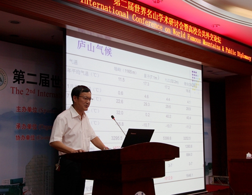 研讨会上,德国欧洲森林艺术协会组织者和发起者乌特女士、法国巴黎第三大学韦遨宇教授、菲律宾圣名大学副校长那罗教授、南非西开普敦大学迈克尔教授、中国江西师范大学地理与环境学院副院长钟业喜教授、中国乐山师范学院四川旅游发展研究中心干鸣丰研究员,世界名山协会非洲副秘书长、南非国家公园负责人盖瑞先生,世界名山协会南美洲副秘书长、塞阿拉州联邦大学教授莫妮卡女士,中国台湾静宜大学王友民教授,中国江西南昌大学经济管理学院龚志强教授,中国九江学院药学与生命科学学院副院长鲍海鸥,日本山梨学院大学熊达云教授,世界名山协会大洋洲副秘书长杨娜女士,罗马尼亚欧洲山脉协会会长米哈尔.安德烈先生,摩尔多瓦自由国际大学国际处副处长拉杜先生,中国黄山学院旅游学院 朱国兴院长,中国九江学院旅游学院院长李松志教授,美国阿姆斯特朗大西洋州立大学地质旅游系助理教授艾米,波特,日本大和高田友好协会秘书长小和田,泰国清迈大学语言学院马如宝教授,中国江西财经大学江西旅游发展研究中心副主任曹国新教授,中国九江学院旅游学院副院长孙冬英教授等23位中外专家学者围绕“世界名山研究”主题作了精彩的报告。他们在报告中提出了一些新概念、新观点、新看法,富有新意、启人深思。