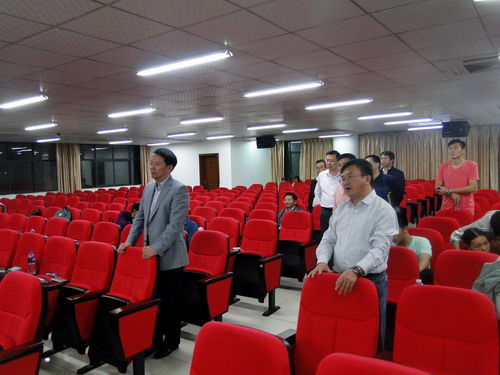 每到一个校区,郑书记都认真地观看了整个排练过程,郑书记一边仔细聆听了同学们的演唱,一边根据音乐的节律打着节拍。在排练的间隙,郑书记走上主席台排练现场,向同学们表示亲切的慰问,并和排练的指导老师探讨排练的相关细节,指出演唱中的某些需要强调和修正的地方。