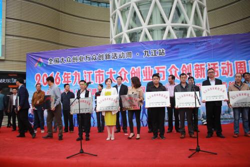 10月12-18日为全国大众创业万众创新活动周(以下简称“双创”活动周),同时也是江西省和九江市“双创”活动周,市委常委、市政府党组副书记、市委农工部长董金寿出席会议。我校招就处、大学科技园受邀参加活动,招就处刘明老师组织带领学生100人参加启动仪式,大学科技园都学飞老师参加授牌仪式并领取市级创业孵化基地牌。