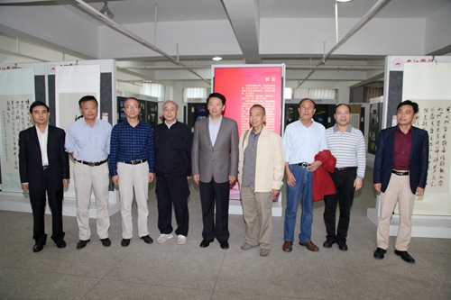 之后,校领导与筹备展览的离退休老同志欧阳毛荣、舒晓山和欧阳祖照等合影留念。