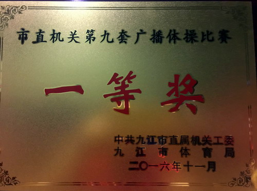 11月9日上午8:30-12:00,由中共九江市直属机关工委主办的第一届“市直机关第九套广播体操比赛”在九江市体育中心综合馆如期举行,我校教工代表队不负众望,斩获冠军。
