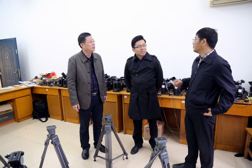 柬埔寨王家孔子学院院长谢莫尼勒还来到数字传媒中心,参观了数字传媒实验教学中心的多个实验室,并体验了数字教学资源的制作过程。