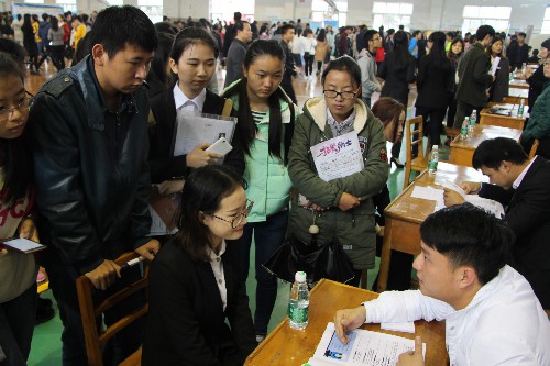 招聘会持续到下午1点,首轮面试基本结束,复试工作转战竞知楼进行,最终有近七百人次和招聘单位达成了就业意向。
