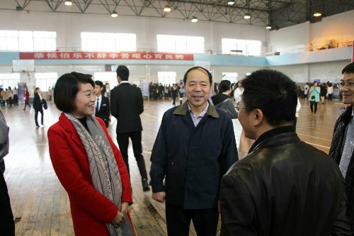 在听取学院领导的有关汇报后,校领导对此次招聘会的组织和安排予以了高度评价,特别是在听到我校旅游管理专业是江西省唯一的重点学科时,校领导更是赞许有加。在听说有几名毕业校友代表企业前来招聘时,校领导特意走上前,和他们一一做了交流,鼓励他们在企业里认真工作,踏实做人,并叮嘱他们要多关注母校的发展,常回母校看看。