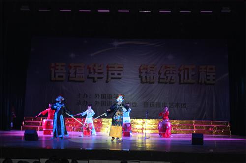 晚会伊始,主持人分别用中、英、日三种语言向大家介绍了外院“127”计划及三大特色教育,充分体现了外语专业的特色。晚会在现代舞协会带来的《神的随波逐流》中拉开了序幕,活泼欢快的节奏让大家很快融入晚会气氛中;声乐协会表演者慵懒声线演唱的歌曲《迷迭香》,让人沉醉其中,流连忘返;随后歌颂长征精神的快板剧《如歌的快板》更是热情激昂,令人心潮澎湃;小品《超级模特队》中,T台与小品相结合的形式让人耳目一新,赢得了观众的一致好评;由爵士舞协会带来的爵士舞《crazy+call me baby》活力四射,引爆全场,将活动气氛推向高潮。