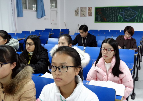 熊丽老师采用PPT方式,讲授内容为My Forever Valentine。课堂上熊老师授课生动,中西文化差异娓娓道来,师生互动频繁,气氛活跃,很好地激发了学生学习兴趣。杨耀防副校长自始至终专注听课,并认真做听课记录。