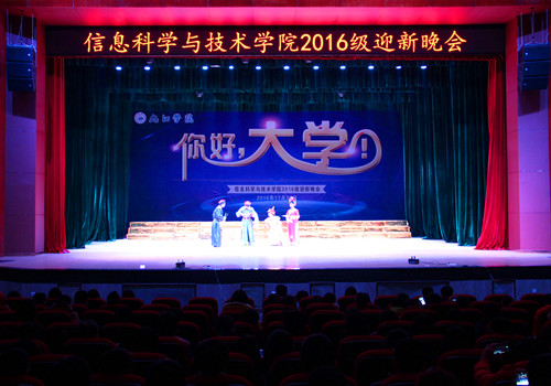 梦想飞扬,你好大学。11月23日晚,信息学院在大礼堂举行了2016级迎新晚会。副校长王万山到场观看,学生处、校团委负责人、信息学院党政领导以及学院全体师生观看了演出。