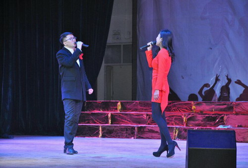 学院团委郭书记及谭老师合唱的《月半小夜曲》更是让人拍手叫好。精湛的歌技、优美的声线使人深深沉醉在这一曲深情的夜曲中。校艺术团也倾情演绎了一支舞蹈,演员们热情洋溢的舞姿赢得了同学们热烈的欢呼声和掌声。