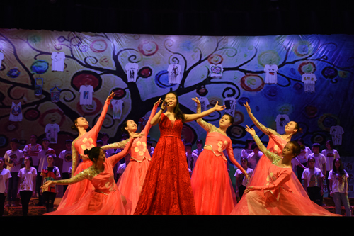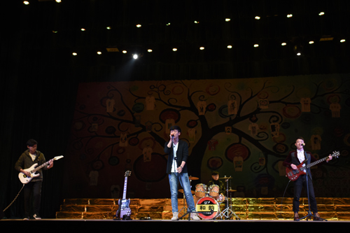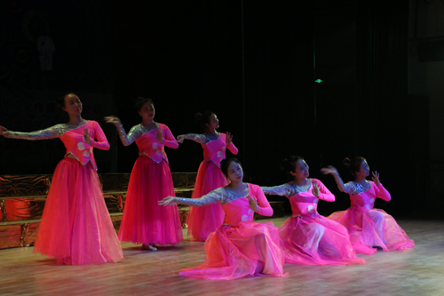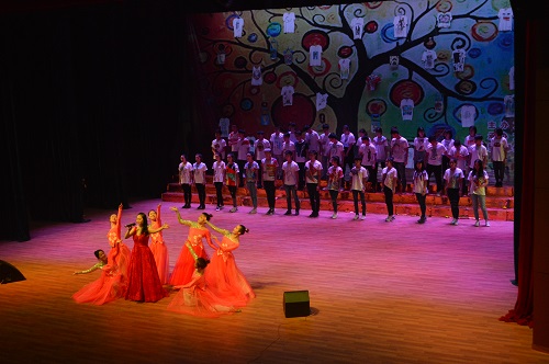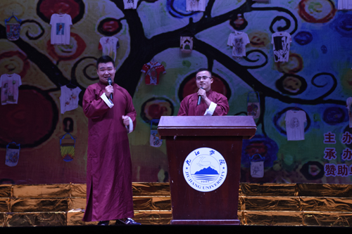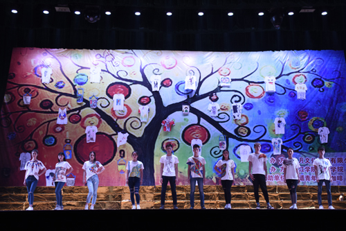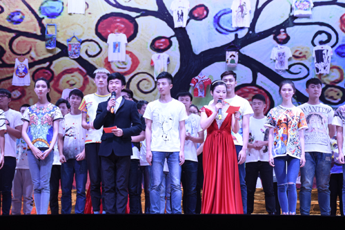 晚会在燧人乐队的演奏中拉开帷幕。晚会既有歌舞表演,也有相声、话剧,还有器乐二重奏,既给人听觉的享受,又是视觉的享受。在优美的歌声,美妙的舞姿中,模特们穿着选手们的手绘设计获奖作品——T恤一一登场展示,赢得台下阵阵掌声和欢呼声。