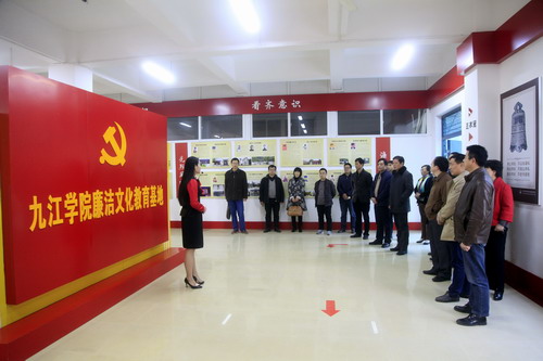 我校廉洁文化教育基地始建于2008年,2016年重新设计开放,占地约200平方米。基地以“挖掘濂溪资源、弘扬廉洁文化”为主题,目的是打造九江学院廉洁文化品牌,宣传九江学院党风廉政建设和反腐败工作,传播正能量。基地内部按照功能划分为“语录区”、“形势区”、“宣誓区”、“警示区”、“濂溪文化展示区”、“九江学院党风廉政建设和反腐败工作展示区”六个部分,配备专职讲解员,力争为全校党员干部、学生党员和其他师生员工开展廉洁文化教育活动提供优质服务。