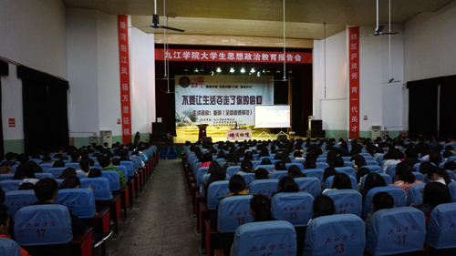 信仰,是一种习惯,一种美德。人必须得有信仰,才能拥有梦想。12月14日晚,全国道德模范董明老师做客九江学院大学生思想政治教育报告会、“爱莲讲堂”进高校暨第152期濂溪讲坛,在浔东校区大礼堂作了一场《不要让生活夺走了你的信仰》为主题的讲座。本次讲座由九江市妇联、校党委宣传部、浔东校区管理办合举办。副校长杨耀防、九江市妇联副主席江浔到场聆听了讲座。党委宣传部、浔东校区管理办相关负责人与浔东校区的1000余史师生一起聆听了这场感人的报告会。讲座由浔东管理办副主任周学英主持。