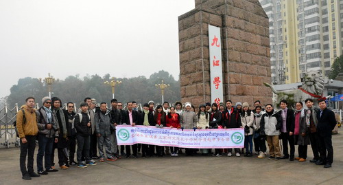 会后,体验团成员及领队老师一行前往九江学院青衿园、庐山文化研究中心等地参观游览,体验团成员、柬埔寨亚欧大学学生索潘妮卡表示:“很高兴能够来到九江学院这所美丽的学校参观学习,校园里的同学们都非常友好,希望这次能够多学点东西,多交朋友。”