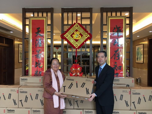 12月19日,中国驻柬埔寨大使馆向柬埔寨孔子学院捐赠一批教学设备。中国驻柬埔寨大使馆熊波大使、政治处程洪波主任、柬埔寨王家研究院院长、柬埔寨孔子学院理事长克罗媞达院士(Khlot Thyda)、王家研究院秘书长李树提龙(LY Sothyrath)、孔子学院院长谢莫尼勒( Chea Munyrith)和中方院长夏修龙出席捐赠仪式。