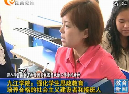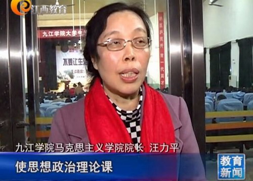 九江学院马克思主义学院院长汪力平:带我们的学生走出课堂,深入了解国情、省情、市情,让学生理论联系实际,加大网络课程的建设,通过微博、微信等等多种形式加大对学生的思想政治教育。(江西教育电视台2016年12月21日http://www.jxetv-com/contents/12/15532.html)