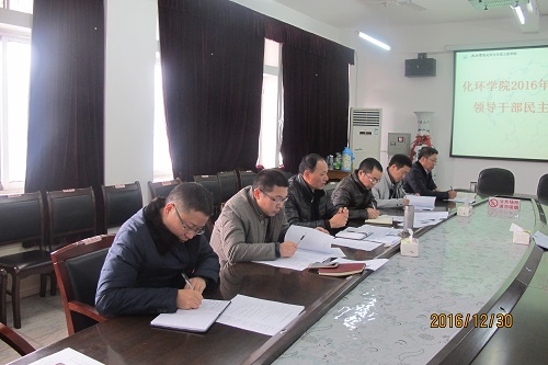 12月30日上午,化环学院在向学楼五楼会议室召开2016年处级党员领导干部民主生活会,夏启国副校长在组织人事部副部长燕红波的陪同下参加了会议,会议由学院党委书记刘新强主持。