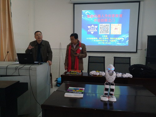推进教育扶贫、补齐教育短板,以教育扶贫助推教育创新。民盟九江学院委员会联合民盟广州市委员会,开展教育智网到人,打造修水西港佛坳教育智网资源平台,创建精准扶贫教育智库,整合精准扶贫政策、项目和人才资源,形成长效精准扶贫机制,把战略扶贫落到实处。邀请民盟广州市委委员、民盟广州市普教基层委员会副主委、全国十佳机器人教练、全国教师创客联盟创客导师、“智创空间”创始人王同聚教授,为西港镇中小学师生作“智能机器人为创客教育开启创新之门”的讲座。王老师把机器人、无人机、3D打印、VR/AR增强现实等创客教育与STEAM教育融通一体,通过现场制作和逼真演示,让全体师生进入到了一个崭新的充满创意的学习空间,领略到创新教育的新奇和乐趣,用最新的教育思想理念启迪学生的心灵智慧,开启学生的无限创想之门。