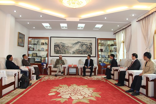 刘晓东校长代表全校师生热烈欢迎尼泊尔中西部大学吴鹏德校长此次来访,他简要介绍了九江学院基本情况,并认真听取了尼泊尔中西部大学校方的来访目的和真诚愿望。他希望借此契机促成两校间在医学教育等多领域的合作交流,同时向对方院校积极寻求与我校共建孔子学院的意愿和努力表示感谢,他表示因我校已经承办了两所孔子学院,故申请再次承办孔子学院国家汉办可能会有所限制,报批可能会有一定难度,但我校会积极探索其他途径和方式开展与尼泊尔中西部大学在各方面的教育合作交流,实现双方优势互补。他表示,中尼两国睦邻友好,中国政府又积极推进“一带一路”战略,作为“一带一路”沿线国家,中尼院校间有着非常良好的合作基础和广阔的发展前景,他希望九江学院和尼泊尔中西部大学能够共同合作,从启动医学教育项目着手,还可围绕汉语国际教育、师生交换和尼泊尔学生读研项目等展开其它多领域的合作与交流。