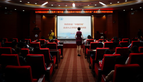 韶关丹霞山管委会副主任、丹霞山国家自然保护区管理局副局长陈昉作了讲话。她说,今天“中国丹霞”进校园系列科普讲座九江学院站正式启动,衷心感谢九江学院的领导和全体师生员工的大力支持,并向他们致以诚挚的问候。丹霞地貌的研究自上世纪20年代,历经中国四代地学人的努力,逐步形成完整的科学体系。广东丹霞山就是最重要的丹霞地貌命名地和研究基地。丹霞山一直致力与丹霞山的保护与利用,大力推动丹霞地貌的科研科普,与国内外诸多高校、科研机构以及专家学者建立广泛联系,成为国内地学、旅游、生物、文化、乡村等多个学科的科研、实习及教学基地。经过认真磋商、积极筹措、反复调研,九江学院和丹霞山将签订合作协议,此次协议的签订,必将进一步促进学校人才培养、科技研发和技术创新,进而实现双方资源共享、互惠互赢,同时也相信我们的合作必将收获丰硕的成果。