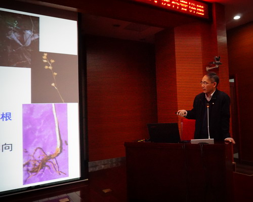 随后,中山大学生命科学学院廖文波教授为大家作了《丹霞山植物多样性-------概念和价值》的学术报告。廖教授从物种概念、植物区系、生物多样性、丹霞山植物区系的特点和价值等四个方面为大家作了丹霞山植物多样性详尽的解读。中山大学地理科学与规划学院彭华教授作了《中国丹霞到世界丹霞》的学术报告。彭教授从丹霞地貌、丹霞地貌的研究简介、中国丹霞申遗历程、中国丹霞申遗的意义、保护利用与可持续发展等方面为我们阐述了中国丹霞到世界丹霞的意义,通过大量的图片与文字说明诠释了丹霞地貌的美丽与科研价值。两位教授在结束学术报告后,与老师、学生进行了提问互动。