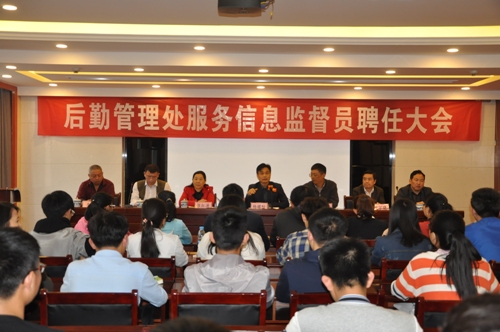 为了进一步完善后勤服务工作体系,搭建师生参与后勤各项服务工作平台,提高服务水平和质量。4月26日下午,后勤管理处在濂溪宾馆二楼会议室召开服务信息监督员聘任大会,副校长杨耀防出席会议并讲话,后勤管理处副科以上干部和全体信息监督员60余人参加会议,会议由后勤管理处党委书记张红涛主持。