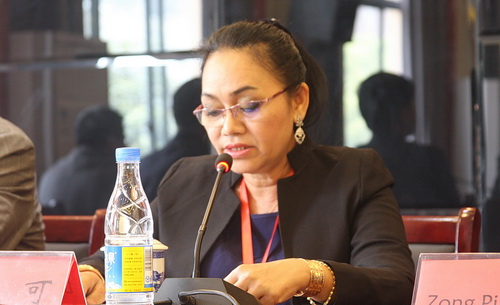 柬埔寨领队Dok Sinara发表致辞,代表柬埔寨旅游培训班全体成员,感谢九江学院的热情接待和精心安排,表示会珍惜参训机会,好好学习。
