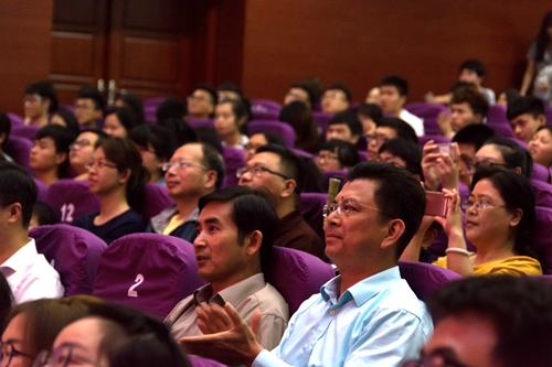 校领导刘晓东、魏立平、王万山与2000余名师生代表一起观看了两场演出。刘晓东、魏立平亲切会见了该剧总导演、我校客座教授、北京外国语大学艺术研究院院长孙萍女士。刘晓东校长对孙萍女士把九江选为《杜丽娘与朱丽叶》全国巡演的首站,把高雅艺术带入九江学院表示衷心的感谢。王万山副校长在演出开始前致辞。孙萍女士向观众介绍了“跨界戏剧”的有关知识。