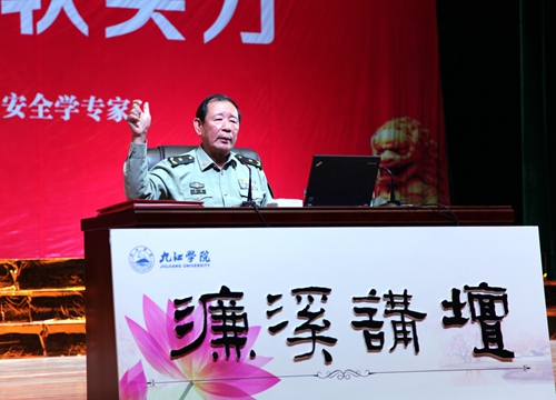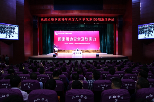 罗援将军的报告不仅是一堂份量厚重的国防教育课,更是一堂饱含深情的爱国主义的教育课,报告强调要大力弘扬民族精神,弘扬爱国主义,要坚决捍卫主权,坚决维护祖国统一,构筑民族精神和爱国主义的钢铁长城。使在场听众进一步认清了当前国防形势和周边动态,增强了国防观念和忧患意识。报告结束后,罗援将军还与现场师生进行了互动,回答了师生提出的问题。罗援将军还为我校濂溪讲坛题词:“与九江学院师生共勉:精忠报国”。