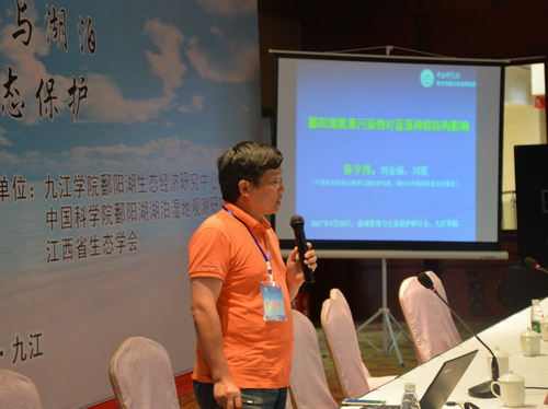 本次学术研讨会邀请了省内外相关领域的13专家做大会主题报告,他们分别是:江西省人民政府原副省长胡振鹏“鄱阳湖湿地植被演变与保护”,中国科学院南京地理与湖泊研究所(杰青)吴庆龙 “湖泊蓝藻水华爆发的生态系统响应及其灾害控制”、湖北工业大学校长刘德富“三峡水库支流水华机理与防控技术”、中国科学院水生生物研究所宋立荣“典型湖泊蓝藻水华毒性评估及其处置的环境风险”、中国科学院海洋研究所王广策“盐藻养殖生物学研究及其产业化”、江西省山江湖开发治理委员会办公室主任戴星照“鄱阳湖流域综合管理实践与展望”、江西省人大环资委副主任甘筱青“‘河长制’的由来、理论基础与江西实践”、九江学院副校长陶春元“基于大数据的产业生态布局智能决策系统研发”、中国科学院鄱阳湖湖泊湿地观测研究站站长张奇“江湖关系与鄱阳湖水文情势变化”、中国科学院青岛生物能源与过程研究所刘天中“微藻的能源与资源化利用——挑战与策略”、中国科学院南京地理与湖泊研究所陈宇炜“鄱阳湖氮素污染物对蓝藻种群结构的影响”、中国科学院水生生物研究所王强“微藻与环境污染生物减排”、江西省科学院生物资源研究所副所长戴年华“鄱阳湖及流域水生态功能的综合保护管理对策”