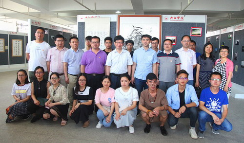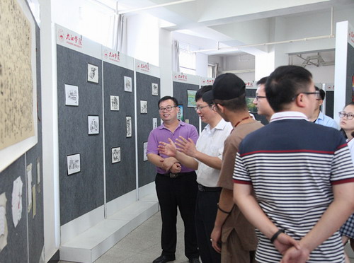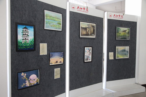 5月27日,副校长王万山在校团委书记闫来英的陪同下来到逸夫图书馆展厅,与各二级学院团委书记和同学们一起参观了正在展出的“诗情画意——九江学院首届诗画国学学生作品展”。