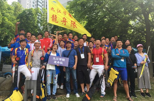 由国家体育总局社会体育指导中心、中国龙舟协会、中央电视台体育频道主办的 2017年中国龙舟公开赛于2017年5月5日在荆州市启动,此赛事与中华龙舟大赛是国内最高水平的龙舟赛。我校龙舟队参加了荆州和上海两站比赛,众多参赛队中既有顺德乐从、南海九江等国内顶尖职业队,也有北华大学、江汉大学、华中科技大学、上海海洋大学等传统的大学生劲旅。我校龙舟健儿在缺席八位主力的情况下(八名队员抽调到省队,备战天津全运会),不畏强敌、奋勇争先,取得了200米直道竞速第六名的好成绩,再次刷新了该项目的最快纪录。参加高水平的职业赛事,与最高水平的队伍同场竞技,教练员和队员们既能够接触到最科学、先进的技战术,又能很好的磨练队员的意志品质,使队员们在技术和心理上都有了很大的进步。我校龙舟队以优良的运动成绩、良好的精神风貌赢得了广大观众的掌声也受到多家媒体的采访,很好的宣传、推介了九江学院,一定程度上扩大了我校的影响力。