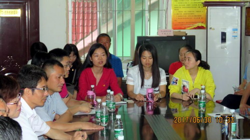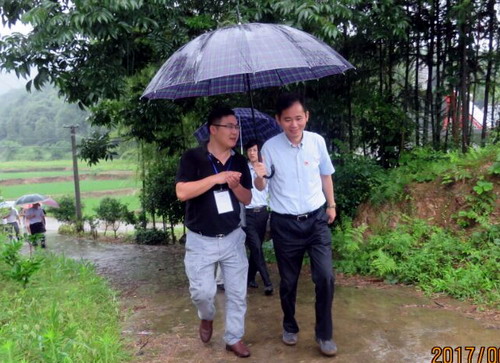 6月30日上午,当校党委书记赵伟一行冒着倾盆大雨来到学校精准扶贫点武宁县官莲乡东山村的时候,一场特色党日活动正在村委会举行。
