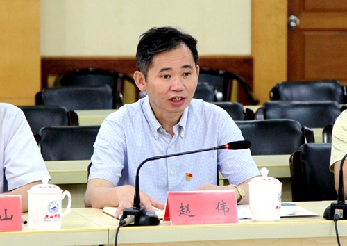 校党委书记赵伟致辞,他向督查组介绍了九江学院基本情况。赵伟指出,学校党委和行政始终高度重视思想政治工作,全省高校思想政治工作会议后,及时学习传达,并专题研究部署,做好贯彻落实会议精神的各方面工作。始终坚持把贯彻落实全国、全省高校思想政治工作会议精神,作为当前和今后一个时期的首要政治任务和“一把手”工程,校党委严格履行思想政治工作主体责任,成立了思想政治工作领导小组,并多次召开专题会议进行传达学习和研究部署,先后制定实施《关于学习贯彻落实全国高校思想政治工作会议精神的实施意见》等系列文件。同时,坚持和完善党委领导下的校长负责制,建立健全党委统一领导、党政分工合作、协调有效运行的思想政治工作机制;深入巩固意识形态主阵地,强化思想理论教育和价值引领,坚持立德树人中心环节,注重发挥思政理论课主渠道作用及哲学社会科学和校园文化育人功能;加强教师队伍、专门力量和师德师风建设;深入推进思政工作改革创新,着力构建“三全育人”工作体系,形成协同创新育人合力,取得了初步成效。他希望专家们多为学校思政工作把脉诊断,多提宝贵意见建议,学校将以此为契机,将思想政治工作提升到一个新的水平。