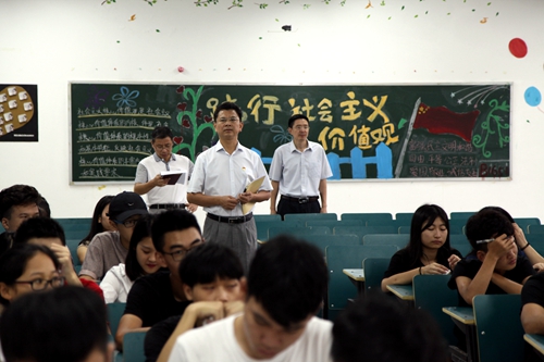 酷暑骤去,凉秋初至。告别了假期的安静与沉寂, 校园里又充满了欢声笑语。9月4日是我校新学期老生开课的第一天,学校3万多名师生精神饱满,意气风发,开始了新学期第一课;各个课堂秩序井然,气氛活跃,纪律严明,景象一新。校党委书记赵伟、校长刘晓东,校党委副书记魏立平,副校长纪岗昌、王万山、陈春生、杨耀防、夏启国、查振华等校领导在教务处和各二级学院负责同志的陪同下,深入四个校区,深入教学一线检查各二级学院新学期的开学工作和开学第一天教学情况。