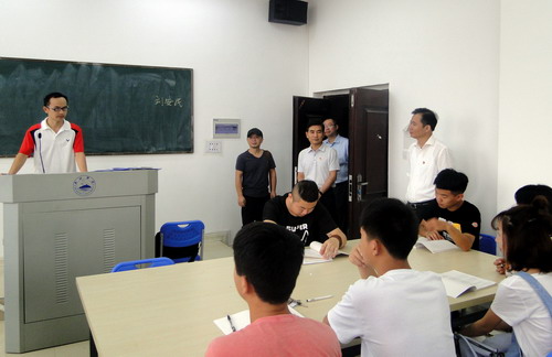 副校长纪岗昌先后来到文友楼、立信楼、实训楼,听取了文传学院、理学院、会计学院负责人关于第一课教学准备、学生到课、新生报到等情况的汇报,并深入教室进行了查看。