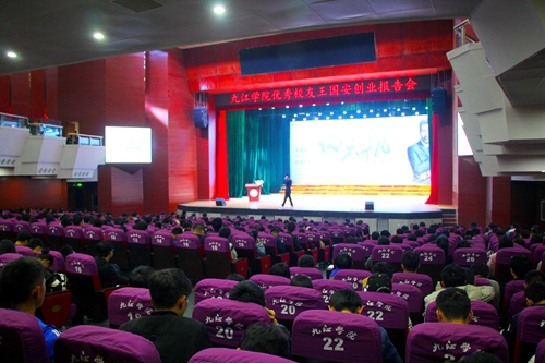 夏启国副校长在主持报告会时介绍了王国安董事长的创业历程及韩后公司概况,并代表九江学院广大师生表达了对王国安校友的热烈欢迎。