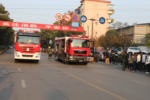 今年的全国“119消防日”主题是“关注消防,平安你我”。为动员全校师生共同关注消防安全、参与消防宣传,11月8日下午,我校与市消防支队共同在主校区举行2017年消防安全宣传暨应急疏散演练。副校长王万山,九江市消防支队重点科科长罗威、高级工程师王春三,濂溪区消防大队大队长江猛等与千余名师生及消防官兵共同参加了宣传和演练。