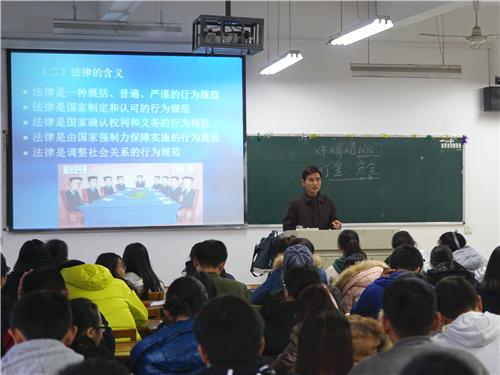 本节课内容为法律的概念、定义。宋喆老师通过“火车票补票”的案例吸引了同学们的兴趣,进行分析,让同学们对狭义法律与广义法律的区别有了进一步的认识。然后组织同学们对“摩托车上高速”的典型案例进行讨论,深入讲解了法律的相关概念、含义。课堂讨论热烈,师生互动频繁,同学们学习热情高。课堂上,魏立平副书记与同学们一同认真听讲,并细心观察学生的表现及师生的互动,不时地做着笔记。