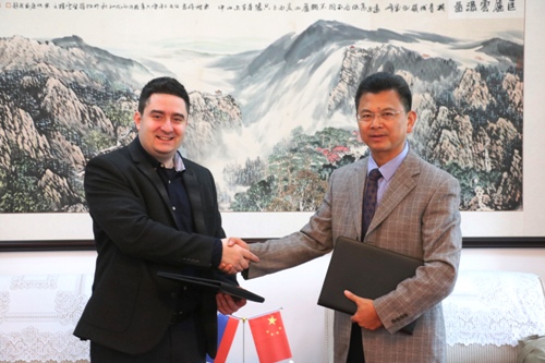 我校国际合作交流处处长帅式毅、艺术学院院长吴维勇等参加了会见。