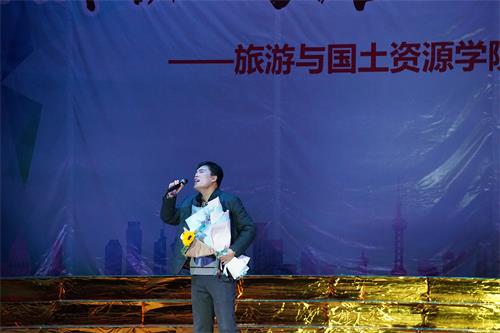 伴随着激昂的音乐响起, 晚会在激动人心的大合唱《游击队之歌》中拉开帷幕。接着,刘晓东校长带领旅游与国土资源学院合唱团演唱了歌曲《我的祖国》。刘校长浑厚高昂的声音,带领我们来到了那个战火纷飞的年代,向我们展示了一一幅幅壮丽的图画,引人入胜。在歌声结束后,我们仿佛还能听到绕梁激昂的歌声,让人回味无穷!
