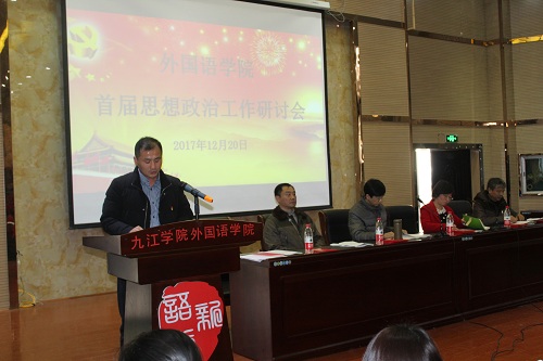 为了深入贯彻党的十九大精神,进一步落实习近平总书记在全国高校思政工作研讨会上的讲话精神,加强学院思政教育研究工作,进一步提高学院思政工作的针对性与实效性,12月20日下午,外国语学院召开首届思政工作研讨会,副校长查振华出席会议,外语全院教师和部分学生代表参加会议,会议由韩琨院长主持。