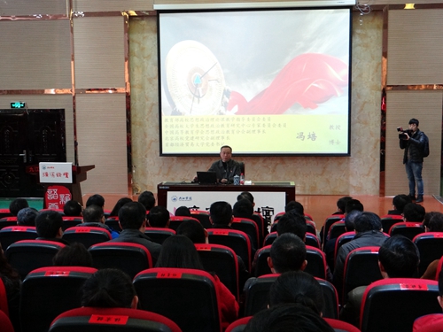 本次会议分两个阶段进行,第一阶段为22日上午在香远楼三楼报告厅举行的12月份校党委中心组(扩大)学习会暨164期濂溪讲坛,由十九大代表、教育部十九大精神宣讲团成员、首都经贸大学党委书记冯培教授为我校师生做了题为《胜于无形—中国特色社会主义大学文化的挑战和构建》的精彩报告。在家校领导赵伟、刘晓东、魏立平、王万山、夏启国、查振华出席报告会。学校副科以上干部、各民主党派负责人、知联会、留联会负责人、党支部书记、党建组织员及学生代表共计500余人到场聆听了报告。报告会由我校党委书记赵伟同志主持。