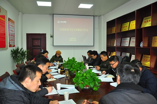 姜东升在会上传达了省教育厅印发的《关于进一步加强校园环境卫生整治工作的通知》,并着重强调了省委省政府领导对校园环境卫生整治工作做出的具体批示,要求各成员认真贯彻落实省厅文件精神。姜东升对我校校园环境卫生专项整治活动做出了具体分工部署,要求大家迅速开展整治行动,营造优美的育人环境、工作环境和学习生活环境,建设平安、和谐、美丽、文明校园。