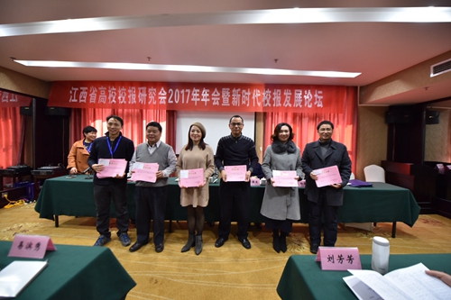 与会人员听取了理事会年度工作报告;理事会财务工作报告。会议还通报了江西省高校校报2016年度好新闻评奖结果并颁发证书,进行了好新闻点评。我校师生共有7件作品荣获好新闻奖,其中邓乐天、王阿莉同学的作品《天使展翅,爱满家园》荣获新闻图片类一等奖;李龙老师的作品《媒介融合语境下的高校校报创新发展》荣获言论类二等奖;柳丹丹同学的作品《以青春之我书写青春中国》荣获言论类三等奖;李龙老师、邓乐天同学的作品《九江学院报第16期第01版:要闻版》荣获版面类二等奖;章歌老师、陈伟娇同学的作品《九江学院报第21期第03版:校园生活》荣获版面类三等奖;刘佳慧同学的《我校“百万公益女孩”朱婧怡事迹引发社会热议纷纷称赞她的公益行为》荣获消息类三等奖;李龙老师的《纪念长征胜利80周年大型合唱音乐会举行》荣获消息类三等奖。