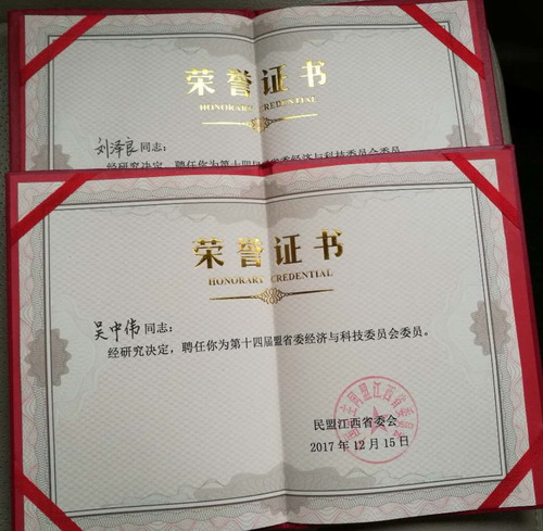 3月5日,民盟江西省委经济与科技委员会全体会议在南昌召开。民盟江西省委专职副主委兼秘书长刘新农出席会议并讲话,会议由民盟省委常委、经济与科技委员会主任刘林芽主持,20余名经济与科技委员会委员参加会议。会议明确了经济与科技委员会委员的职责、任务和制度,为全体委员颁发了证书,我校吴中伟博士、刘泽良副教授两名盟员担任委员。