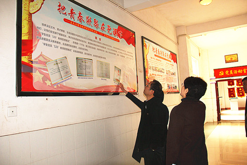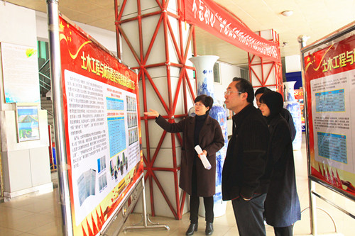 石海舟部长一行首先参观了土建学院“省级高校示范性党员活动室”,土建学院郭玉荣书记重点介绍了土建学院党员十九大精神学习活动、大学生思想政治教育工作和学生党建创新工作情况。土建学院党员活动室分为“三室两厅”,按照“五化”模式打造集议事、教育、服务、文化等综合功能的活动阵地。基本做到了阵地建设立体化、制度上墙系统化、工作资料规范化、成果展示多样化、促进发展实效化。石部长一行边看边听边询问,不时点头肯定,不时提出改进建议。